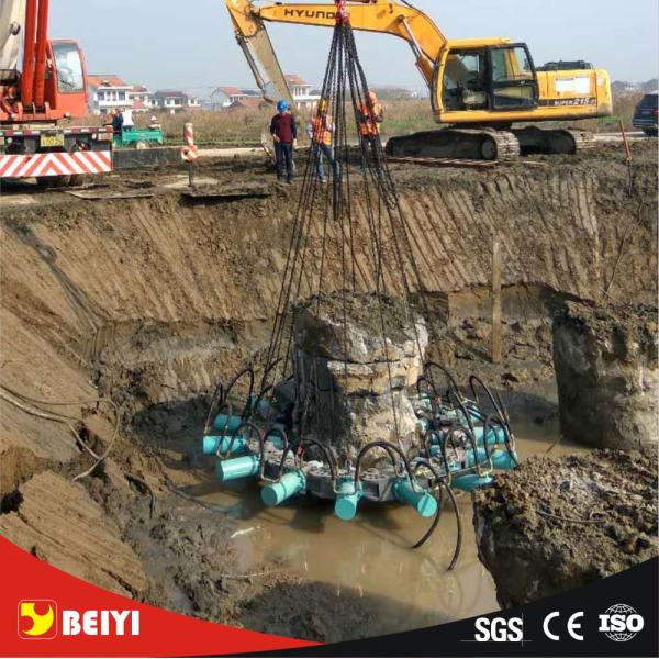 BEIYI MACHINERY Hydraulic pile breaker can break such like cast-in-place piles, precast piles etc. It can be divided into round and square by the pile shape. Our hydraulic pile breaker is widely used in high-speed railway bridges and civil building pile foundation engineering. Normally hydraulic round pile breaker can break pile diameter from 600-2200 mm and hydraulic square pile breaker is suitable for square piles from 300-650 mm. Our machine can meet the requirements of all kinds of large-scale infrastructure construction.